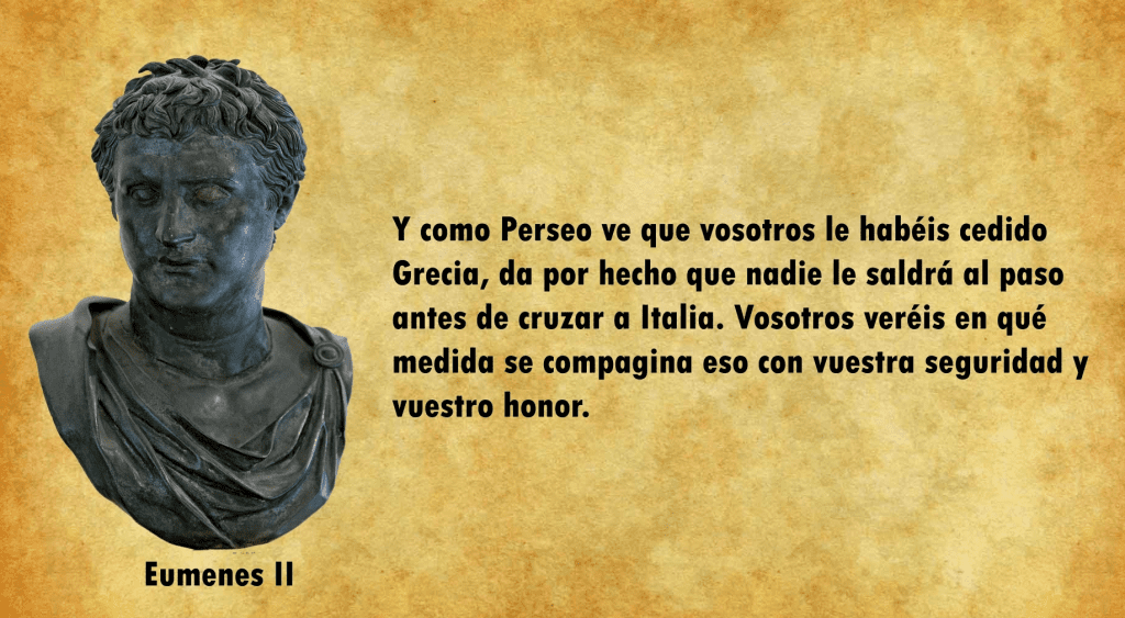 Eumenes, conocedor del orgullo romano, miró a los senadores y les dijo: